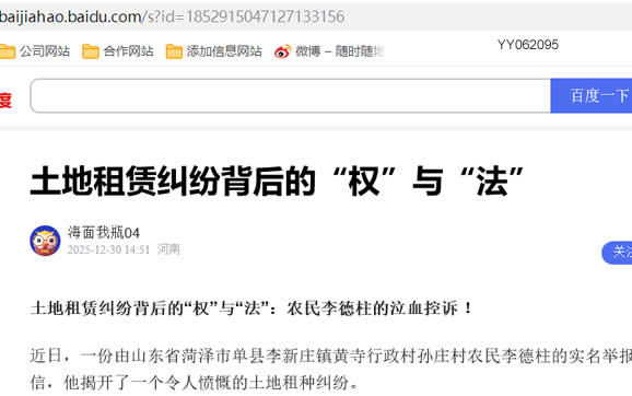近日,一份由山东省菏泽市单县李新庄镇黄寺行政村孙庄村农民李德柱的实名举报信,他揭开了一个令人愤慨的土地租种纠纷。